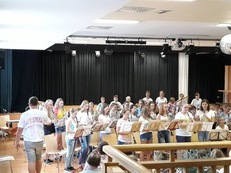 Heute fand schließlich ein Abschlusskonzert statt, bei dem die erprobten Stücke vom gesamten Orchester und von verschiedenen Ensembles gespielt und gesungen wurden. Das Konzert wurde auch von den Jungmusikern selbst moderiert.