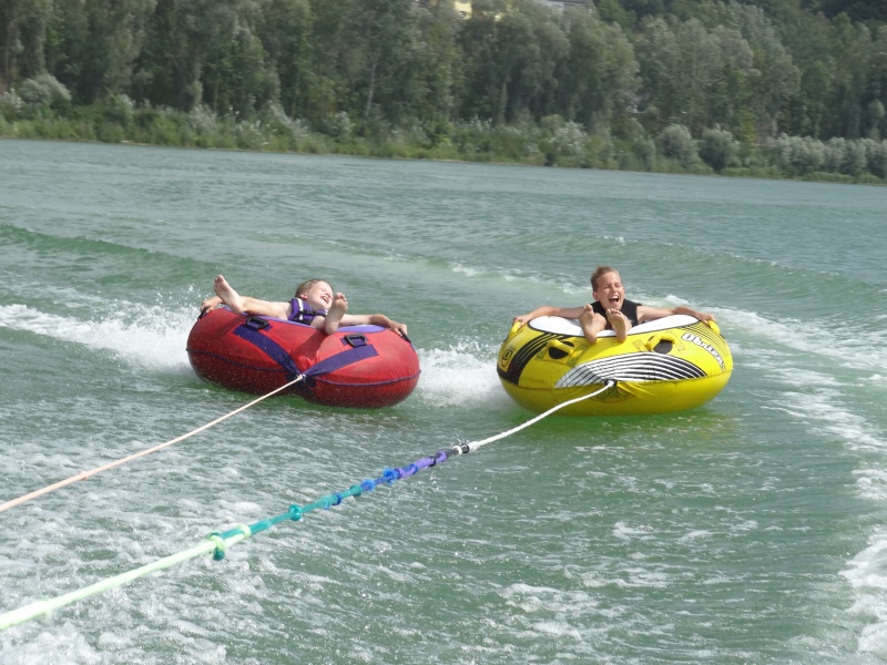 Bei strahlendem Sonnenschein und heißen Temperaturen konnten sich unsere Wasserratten beim Wasserski- und Reifenfahren austoben. Sich mit Skiern über das Wasser ziehen zu lassen, sieht einfacher aus, als es ist. Mit unseren netten, charmanten Guides, die Luki extra organisierte, lernten die Kids die dafür notwendige Haltung und Körperspannung und beherrschten dies sehr schnell. Ausgestattet mit Schwimmwesten zischten sie sehr professionell nach vorne. Einige waren von sich selbst so überrascht, sodass sie gleich noch eine Runde drehten. Um rasch wieder zu körperlichen Kräften zu kommen, stärkten sie sich in der Wartezeit mit knackigem Obst.