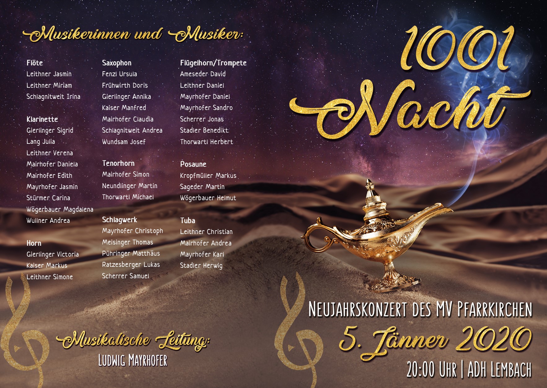 WIR LADEN EUCH ZU DIESER 1000 UND 1 KONZERTNACHT am Sonntag, 5. Jänner 2020 um 20:00 Uhr in die Alfons Dorfner-Halle sehr herzlich ein!