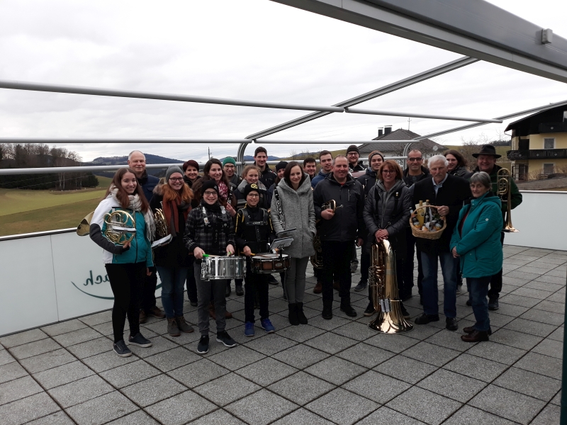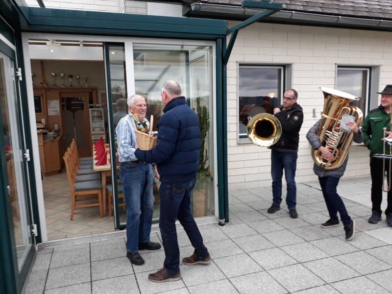 Zu seinem 80. Geburtstag gratulierte der Musikverein Pfarrkirchen Hans Bauer mit ein paar Märschen. Auch den Lieblingsmarsch von Hans „Mein Böhmerland“ gab es zu hören. Hans unterstützte den Verein viele Jahre auf dem Hornregister und als ausdauernder Notenarchivar. Anschließend an das Geburtstagsständchen waren wir ins GH Pröll eingeladen.