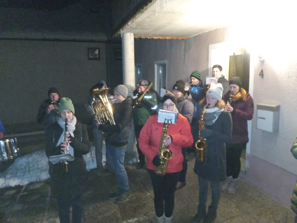 Am 10. Dezember 2021 feierte Karl Hölzl seinen 85. Geburtstag. Coronabedingt war es uns leider nicht möglich, zu diesem erfreulichen Anlass musikalisch zu gratulieren. Umso mehr freuten wir uns, dass wir Karl dann am 12. Jänner 2022 mit ein paar Märschen überraschen und ihm nachträglich musikalische Glückwünsche überbringen konnten.