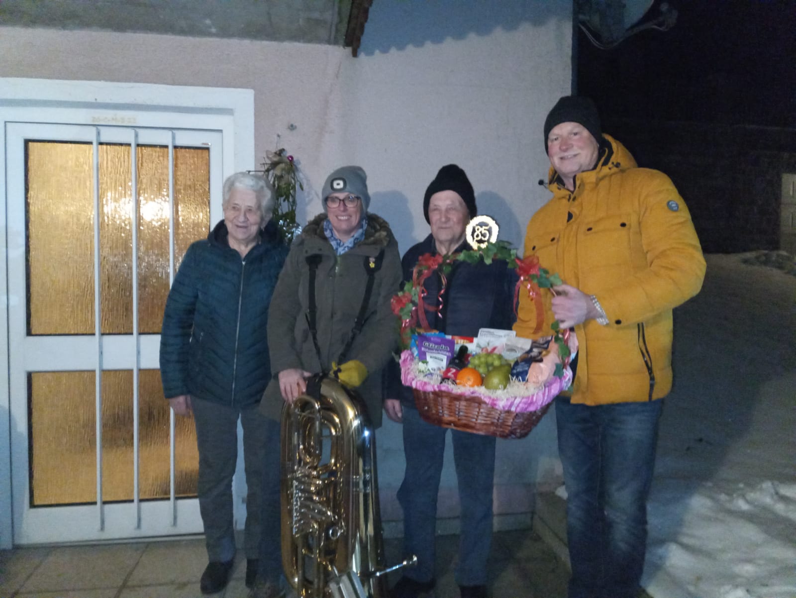 Am 10. Dezember 2021 feierte Karl Hölzl seinen 85. Geburtstag. Coronabedingt war es uns leider nicht möglich, zu diesem erfreulichen Anlass musikalisch zu gratulieren. Umso mehr freuten wir uns, dass wir Karl dann am 12. Jänner 2022 mit ein paar Märschen überraschen und ihm nachträglich musikalische Glückwünsche überbringen konnten.