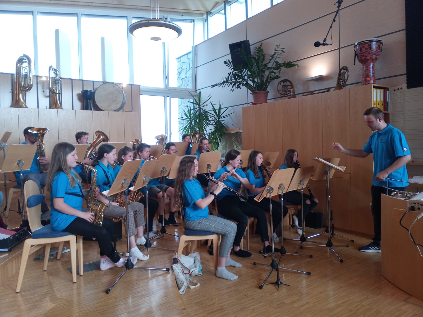 Am Freitag, den 13.Mai, war es nach zwei Jahren endlich wieder soweit. Unsere Crazy Band war top vorbereitet für ihr erstes Konzert nach der langen Pause. Mit Bravour meisterten die beiden Jugendorchesterleiter David Ameseder und Simon Mairhofer ihre Konzertprämiere als Dirigenten. Nach dem ersten Stück „Drunken Sailor“ und einer kleinen Vorstellrunde gaben unsere Jungmusiker die einstudierten Stücke zum Besten. Auch großartige Solostücke bekamen die Zuschauer zu hören.