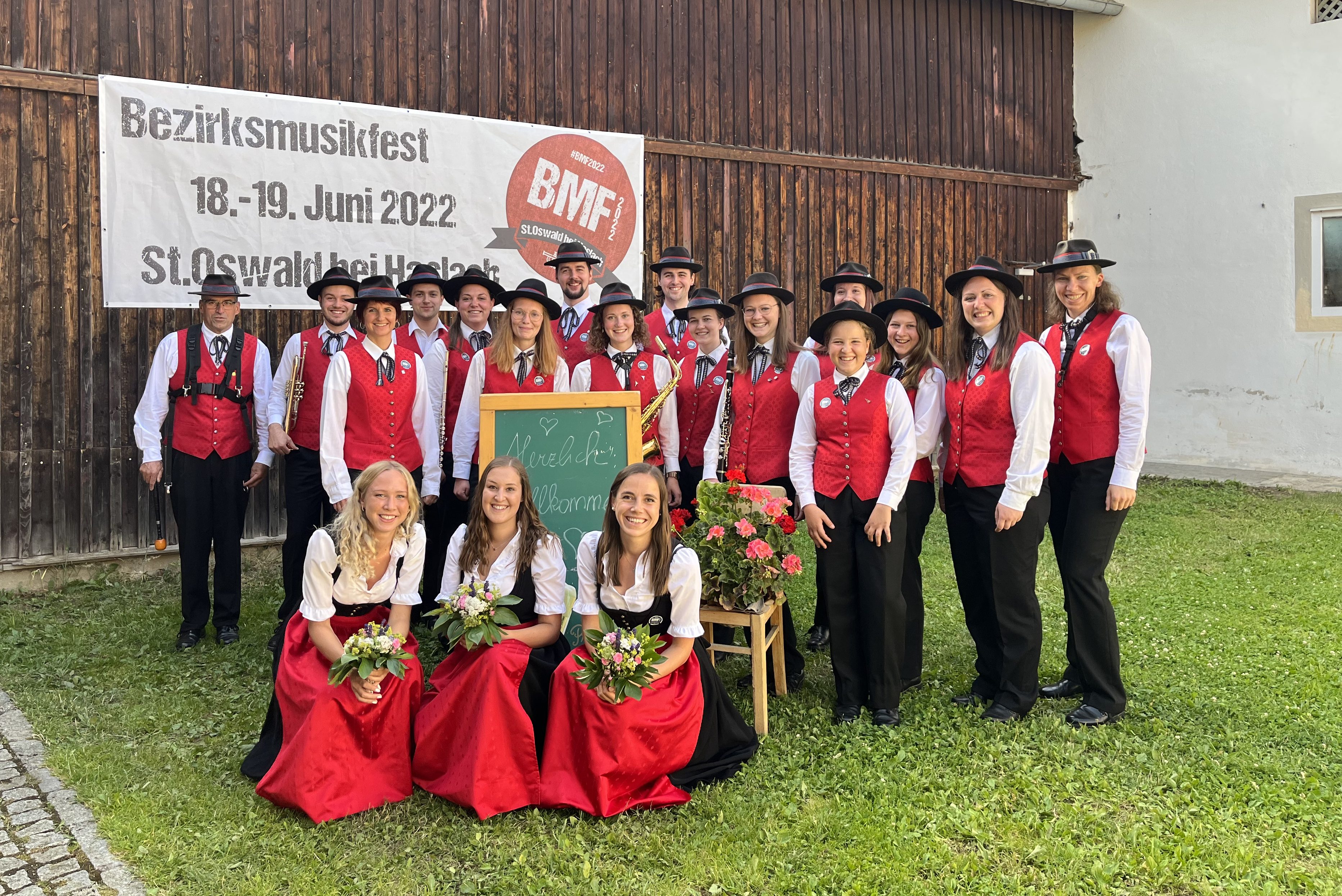 Nach zwei Jahren Pause konnte dieses Wochenende endlich wieder ein Bezirksmusikfest stattfinden, welches vom Musikverein St. Oswald bei Haslach perfekt organisiert wurde. Wir traten am Samstag, den 18. Juni, in der Leistungsstufe D an und erreichten mit 93,07 Punkten einen ausgezeichneten Erfolg!