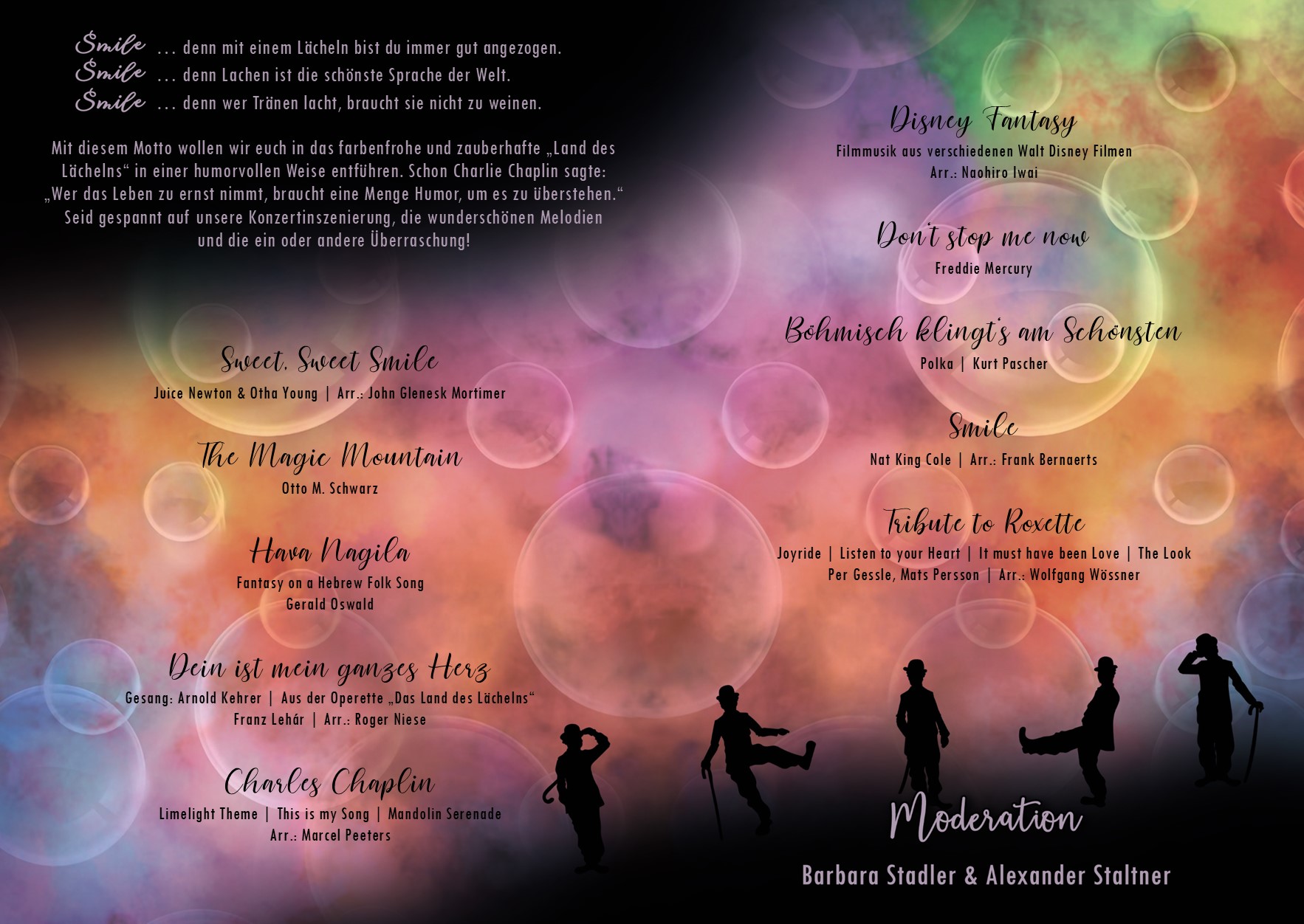 Mit diesem Motto wollen wir euch in das farbenfrohe und zauberhafte „Land des Lächelns“ in einer humorvollen Weise entführen. Schon Charlie Chaplin sagte: