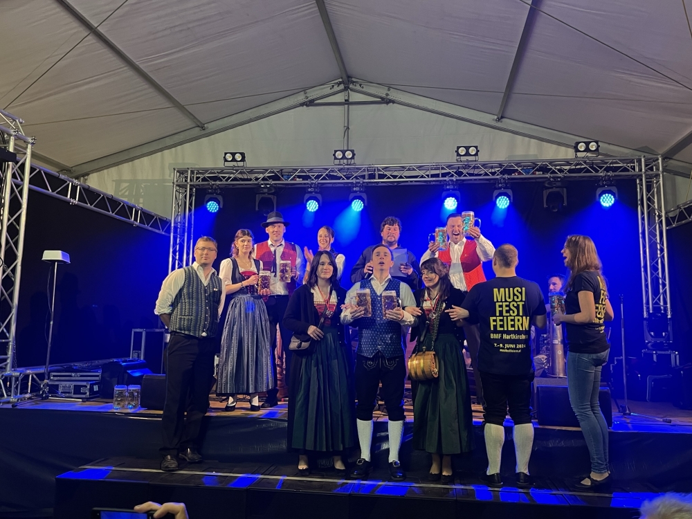 Zur Feier des 150-jährigen Bestandsjubiläums veranstaltete der MV Niederkappel am 28. April 2023 einen Sternmarsch im Rahmen des Zeltfestes “Burning Revolution”. Als eine von 13 Kapellen nahmen natürlich auch wir an dieser Veranstaltung gerne teil. Das typische Aprilwetter meinte es nicht gut mit den Niederkapplern und so musste der Sternmarsch leider kurzfristig abgesagt werden und es gab nur einen kurzen Einmarsch aller Kapellen zum Festzelt, wo das Gesamtspiel aber ohne Einschränkungen stattfinden konnte. Da so viele motivierte Musiker in Niederkappel waren und die WüdaraMusi für Stimmung sorgte, kam fast ein bisschen Musikfeststimmung auf.
