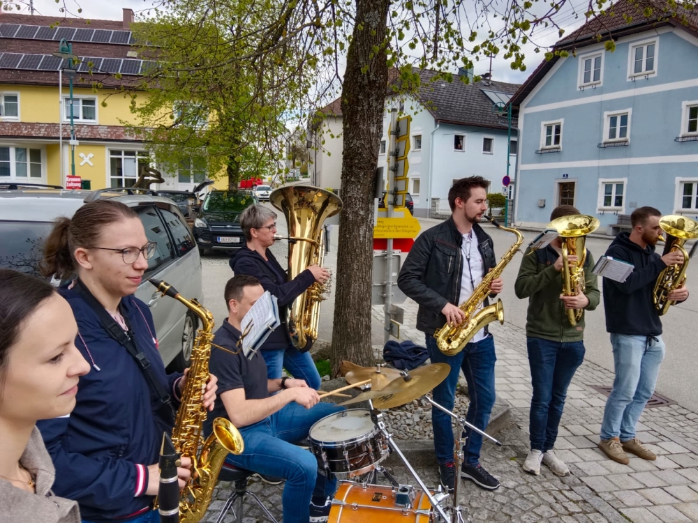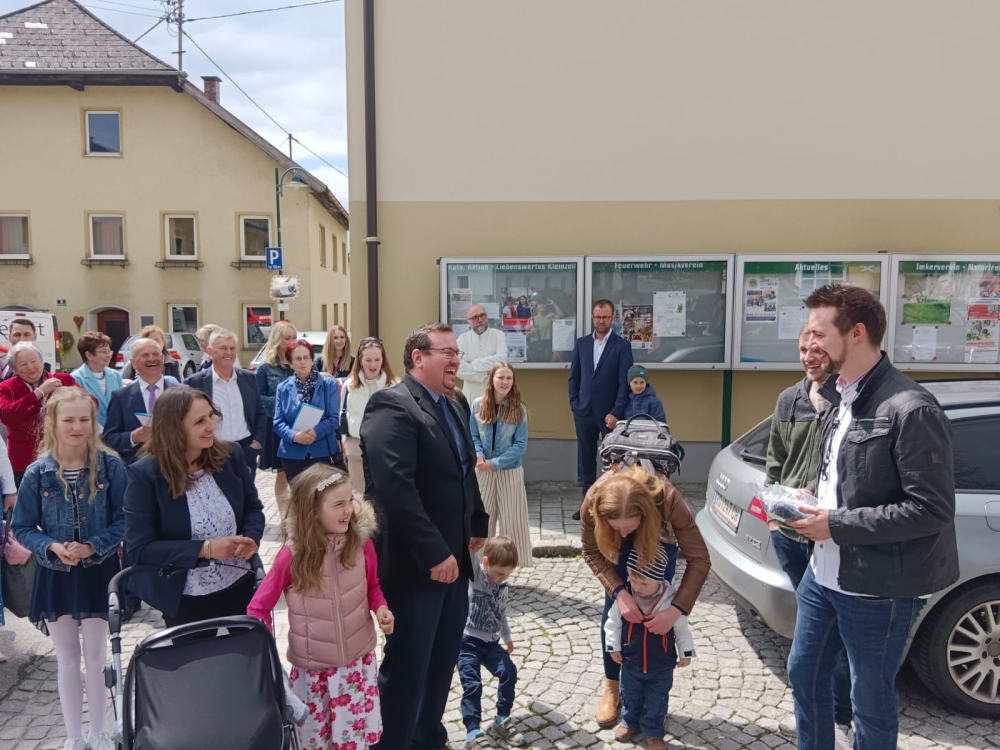 Am Sonntag, den 30. April, fand die Taufe von Lukas Stadler statt. Unsere Bierbrezn’ Musi empfing den Täufling und die Familie bei strahlendem Sonnenschein mit ein paar Märschen am Ortsplatz in Kleinzell. Nach Marie, David und Emilian ist seit Dezember auch Lukas Teil der Familie unserer ehemaligen Marketenderin Silke und unseres Trompeters Benedikt.