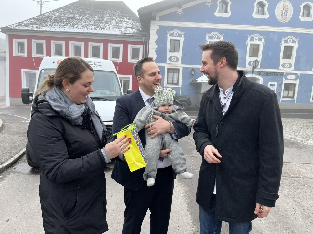 Wie jeder Musikernachwuchs bekam auch Jannik als kleines Mitbringsel eine erste Uniform – bestehend aus einem T-Shirt mit Vereinslogo und einer kleinen Jeanshose – und gehört damit jetzt offiziell zum Fanclub des Musikvereins Pfarrkirchen.