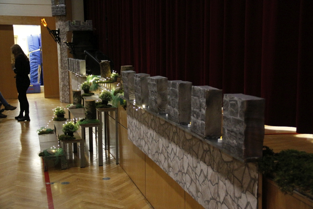 Wer am 5. Jänner die Alfons-Dorfner-Halle betreten hat, fand sich sofort in einer imposanten Burg wieder. An dieser Stelle möchten wir uns bei Karl Mayrhofer bedanken, der (wenn man das so nennen will) der oberste Kopf unseres Dekoteams war und für die Modellierung der Burg mehrere Tage aufgewendet hat. Mit den eindrucksvoll gestalteten Türmen auf und neben der Bühne wurde das Thema sichtbar umgesetzt.