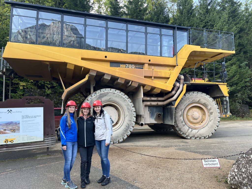 Kernöl, Dachstein, STEIERMARK. Am 13. September wagten wir uns im Zuge unseres Musikausfluges in die wunderschöne Steiermark. Pünktlichst um 5:45 Uhr in der Früh starteten wir mit dem Bus von Pfarrkirchen Richtung Autobahn. Auch wenn es für manche noch keine Zeit zum Aufstehen war, konnte niemand der sofortigen guten Laune im Bus entkommen. Nach fast drei Stunden Fahrt gelangten wir zu unserem ersten Programmpunkt: der Erzberg! Nach einer schnellen Klopause und einem kleinen Fotoshooting vorm Bus ging es zügig zur Anmeldung. Die kurze Wartezeit überbrückten ein paar Musikanten mit Kaffee, andere wiederum mit einem Hopfen lastigen Getränk. Während wir warteten, machte uns der Ausblick am Wartebereich bereits lange Zungen, denn wir sahen direkt auf unser Taxi, welches uns auf den Erzberg bringen wird. Der 55 Tonnen schwere gelbe Koloss, unter den meisten als ,,Hauly‘‘ bekannt, ist ein wahrer Hingucker und wahnsinnig fotogen. (Und unsere Mädels natürlich auch ;))