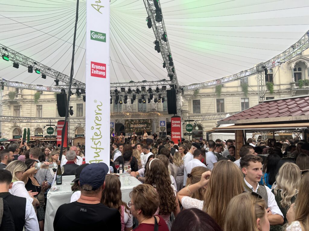 Zurück fuhren wir nach unserem Besuch am Erzberg und dem Mittagessen, im nahe gelegenen Gasthaus, weiter zu unserer Unterkunft in Graz. Lang verweilten wir allerdings dort nicht, denn das Aufsteirern wartete bereits auf uns. Tracht, Musik und gute Stimmung. Einfach herrlich. Somit endete unser erster Tag in der Steiermark mit einem Lächeln im Gesicht.