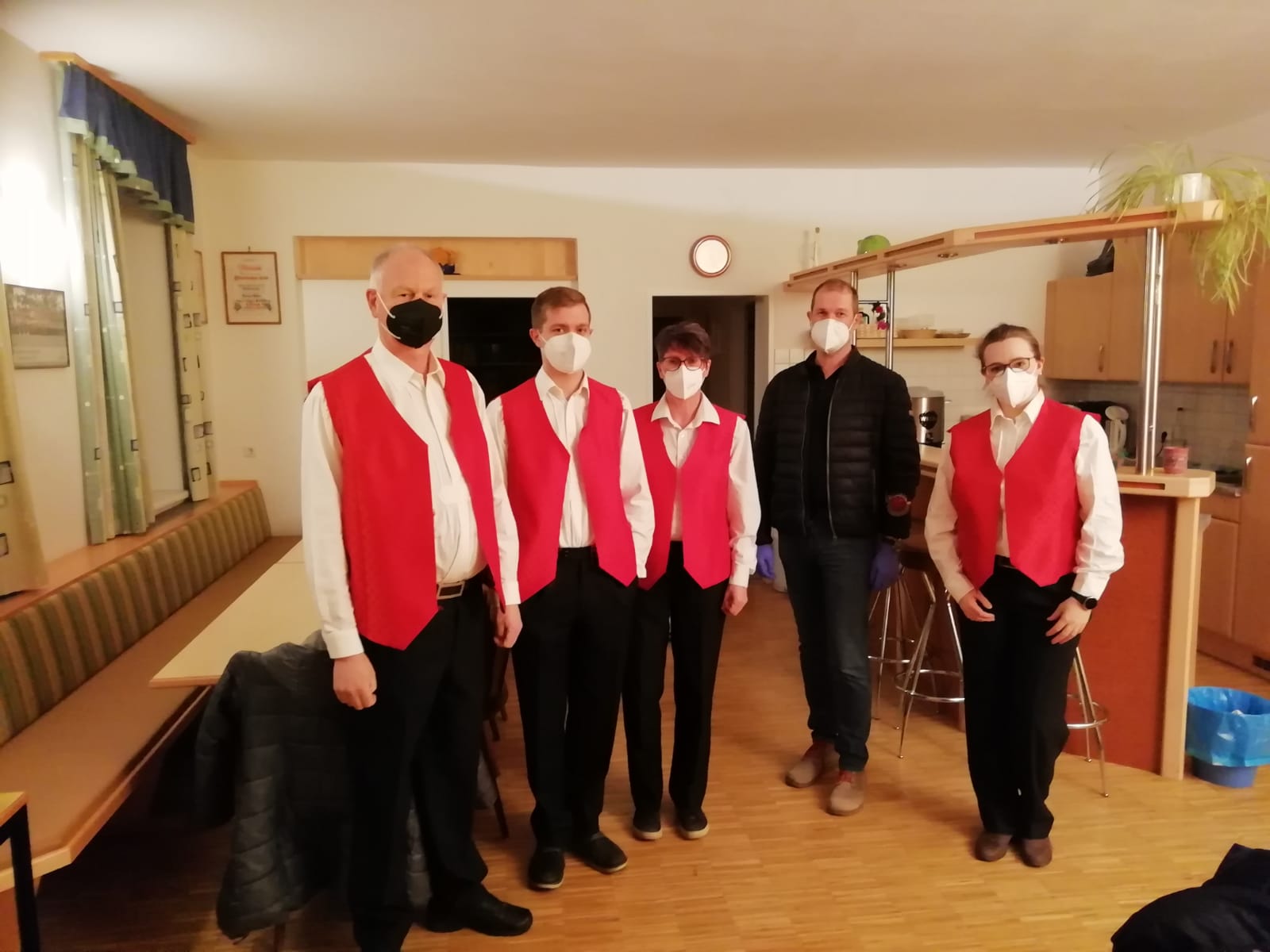 Während der aufgrund von Corona erzwungenen musikalischen Pause wurden alle Musiker vermessen und mittlerweile haben wir auch schon die erste Ausrückung mit unseren neuen Gilets hinter uns gebracht.