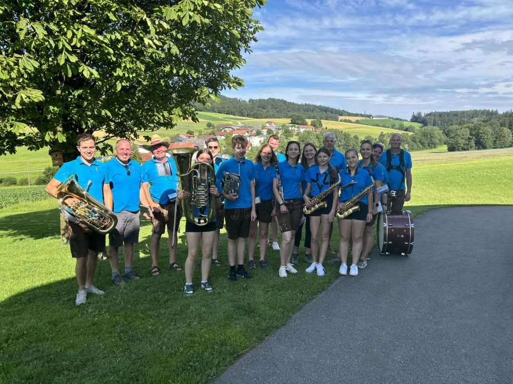 Am 22. Juni 2024 machten wir uns bei strahlendem Sonnenschein auf den Weg in die Dörfer Pfarrkirchens. Wir wollten auch die Bevölkerung außerhalb des Ortskerns einmal besuchen und ein paar Märsche zum Besten geben. Wir Musiker teilten uns in zwei Gruppen. Eine Gruppe startete in Scharten, die andere Gruppe in Schlag. Am Ende der beiden Runden trafen wir uns in Pollmannsdorf zu einem gemütlichen Ausklang bei einer Grillerei. An dieser Stelle möchten wir uns bei den vielen Zuhörern bedanken! Danke…