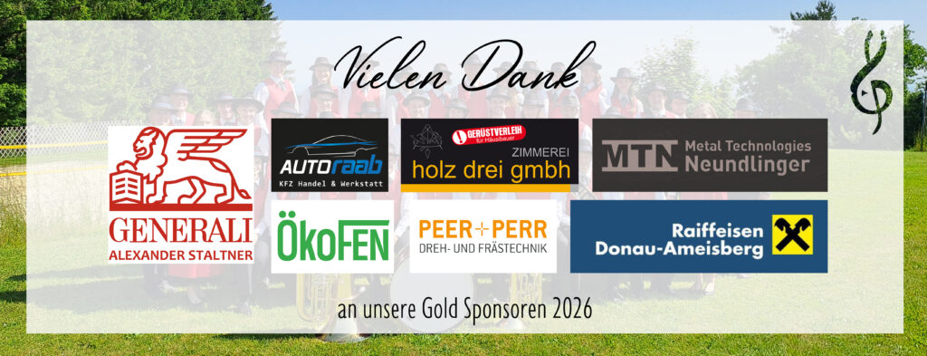 Besonders bedanken möchten wir uns bei unseren GOLD SPONSOREN für das Jahr 2026. Vielen herzlichen Dank für die großzügige finanzielle Unterstützung und die gute Zusammenarbeit (die nachfolgenden Sponsoren sind alphabetisch gereiht).