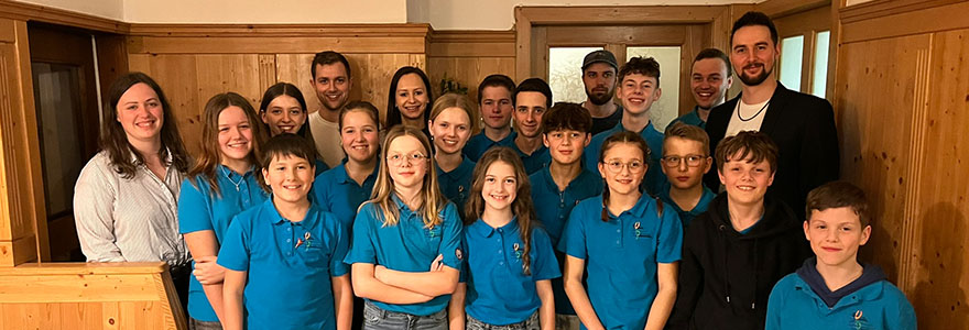 hinten v.l.n.r.: Martin Neundlinger (O-Team), Jasmin Mayrhofer (Jugendreferentin), Christian Wögerbauer (Trompete), Simon Mairhofer (Leitung Jugendorchester), David Ameseder (Leitung Jugendorchester)
